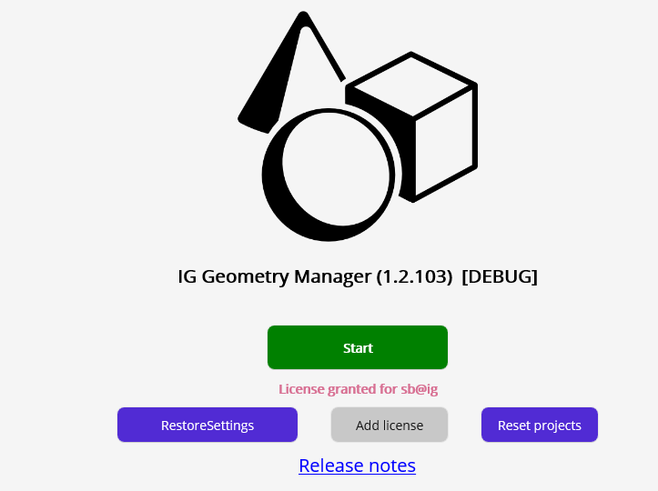 As of version 1.2.102 and later, Geometry Manager requires a valid IG license. All information about this topic can be found in the chapter Licensing.