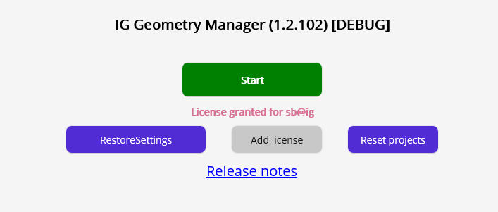 If all okay, the Geometry Manager will now shows an license granted statement and the start button is available again.